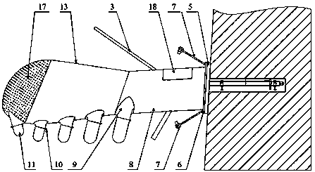 摘要:一种土遗址专用整套清孔装置及使用方法,包括给风系统、清孔系统和防尘收集系统组成,其中风速控制器与空压机相连,并通过给风软管分别与主风管、副起风管相连。风管支架与主风管连接、柔性接触垫、稳定支架和防尘柔性袋与按压环相连,收集袋通过换袋拉链与防尘柔性袋下端的收集口相连,滤尘网通过环形拉链与防尘柔性袋相连,主管阻尘筒和副管阻尘筒均与防尘柔性袋固接。适用于不同土质成分的土遗址清孔和不同孔径,可保证持续稳定给风,全面清除孔内渣土,不留死角,对土遗址孔壁几乎无扰动,极大程度的保护了锚孔,并能有效地控制清孔过程对周围环境的污染。