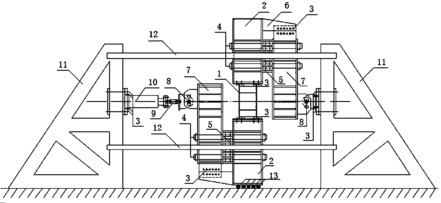 摘要:剪切型耗能梁段受纯剪力的试验加载装置,整个试验装置分为四个部分:第一部分为加载架部分,加载架由加载梁和框架梁相连组成。框架梁与加载梁通过高强螺栓、高强拉杆、箱型垫块及连接板相连。第二部分为主动施加荷载部分,主动施加荷载部分由高强螺栓左侧铰支座、传感器、拉压千斤顶及左侧三角反力架组成。左侧铰支座与传感器通过丝杆连接,传感器与拉压千斤顶通过丝杆连接,拉压千斤顶通过垫板及高强螺栓固定在左侧三角反力架上。第三部分为被动加载部分,被动加载部分由右侧铰支座及右侧三角反力架组成。右侧铰支座通过垫板及高强螺栓固定在右侧三角反力架上。第四部分为剪切型耗能梁段部分。能进行独立加载,使剪切型耗能梁段受纯剪力。