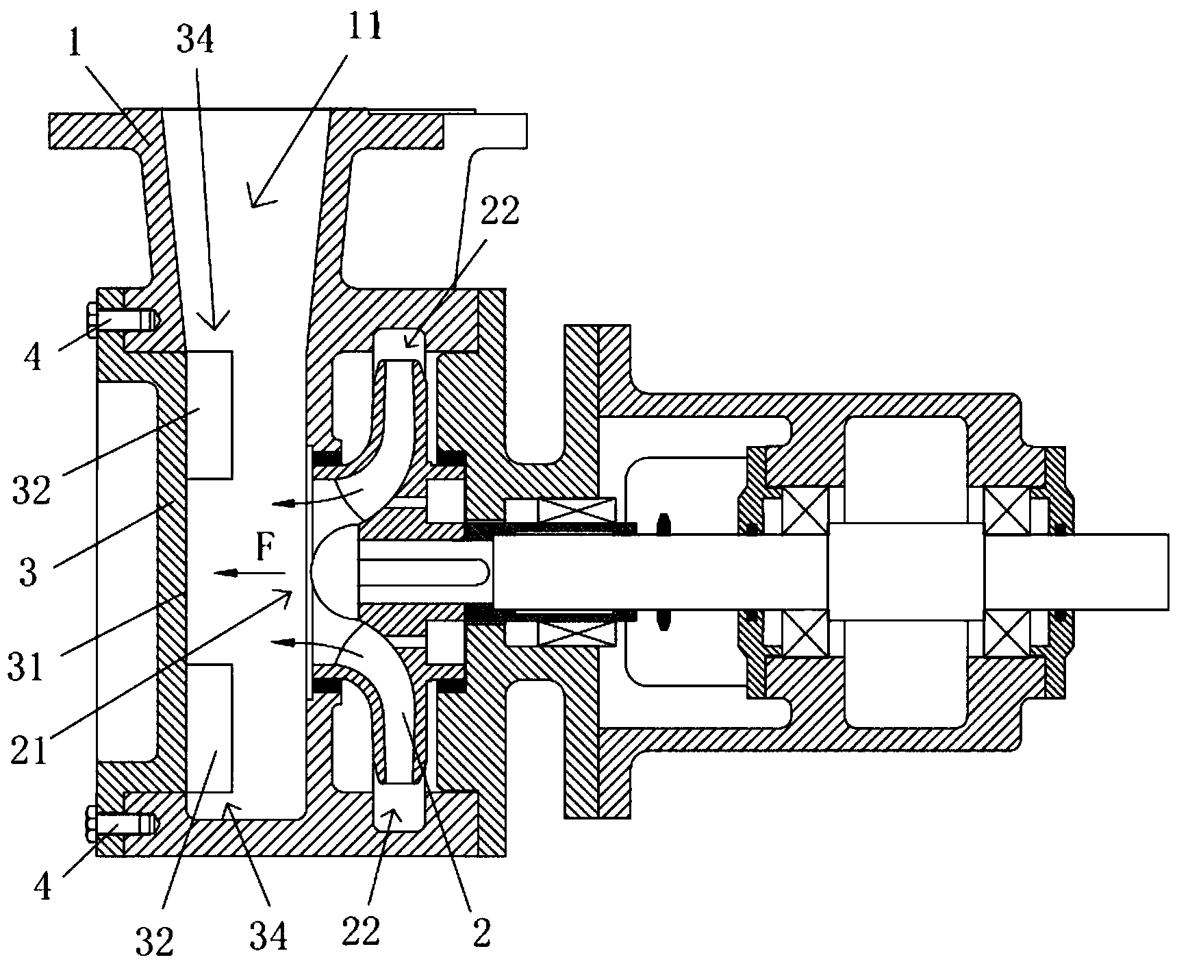 摘要:本发明属于流体机械领域,具体涉及一种壳体出口方向与叶轮出口方向相互垂直的液力透平。为了解决在壳体出口与叶轮出口相互垂直的液力透平中,流体流经叶轮出口与壳体出口之间部分时存在着水力效率损失严重的问题,本发明公开了一种液力透平。该液力透平,包括壳体、叶轮以及导流器,所述导流器与所述壳体固定连接,并且所述导流器的工作面与所述叶轮的出口端沿水平方向相向对应;在所述导流器的工作面上沿圆周方向均布有多个导流叶片,并且形成位于所述导流器中心位置的导流进口和位于所述导流器边缘位置的导流出口。该液力透平通过导流器中导流叶片对流体的导流作用,可以降低叶轮出口与壳体出口之间的阻力损失,提高液力透平的水力效率。