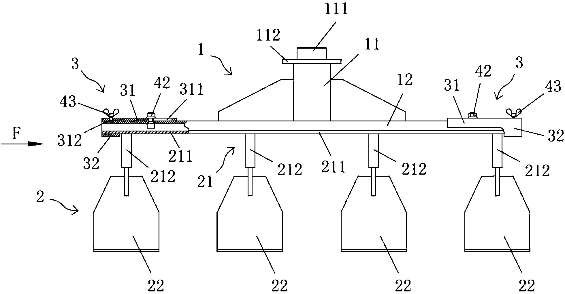 摘要:本发明属于铝锭连续铸造生产设备领域。为了解决采用现有方法对机器人的打渣铲进行更换过程中,存在更换时间长和高温危险的问题,本发明公开了一种铝锭连续铸造生产线打渣机器人的打渣装置。该打渣装置,包括固定架、渣铲组件以及快换夹具;所述固定架为T形结构,包括竖直架和水平架,所述竖直架的一端与机器人连接,另一端与所述水平架连接;所述渣铲组件包括渣铲板和渣铲座,所述渣铲板与所述渣铲座固定连接;所述渣铲组件位于所述固定架的下方位置;所述渣铲座通过所述快换夹具与所述水平架可拆卸连接。本发明的打渣装置,不仅可以实现对打渣铲的在线快速更换,提高工作效率,而且避免了高温拆装操作,提高了操作过程的安全性。