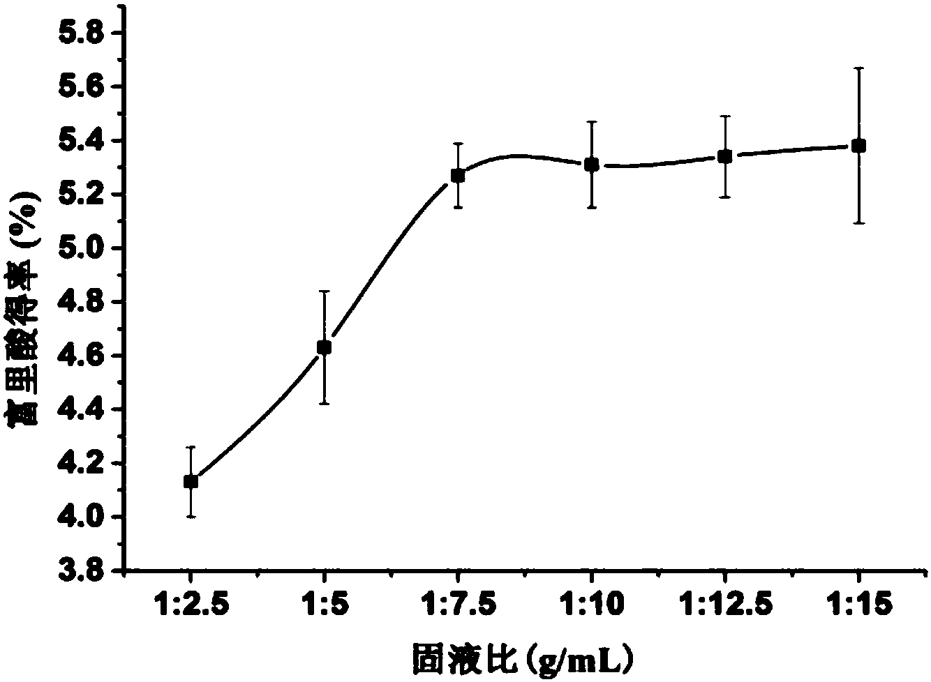 摘要:本发明提供了一种提取酒糟富里酸的方法。本发明首先调节酒糟为碱性,然后顺次进行热提取、酸析、沉淀和浓缩处理,提取得到酒糟富里酸。由实施例的实验结果可知,本发明提供的提取方法能够成功的从酒糟中提取出酒糟富里酸,并且酒糟富里酸的得率为4.2~6.25%。此外,本发明得到的酒糟富里酸为微晶态物质,可溶于水、酸和碱,微溶于乙醇,不溶于氯仿和丙酮出现明显分层现象;除了能够抑制大肠杆菌、枯草芽孢杆菌、金黄色葡萄球菌、硫色镰刀菌和互隔交链孢霉,还能够抑制乳腺癌细胞MAD‑231增殖。