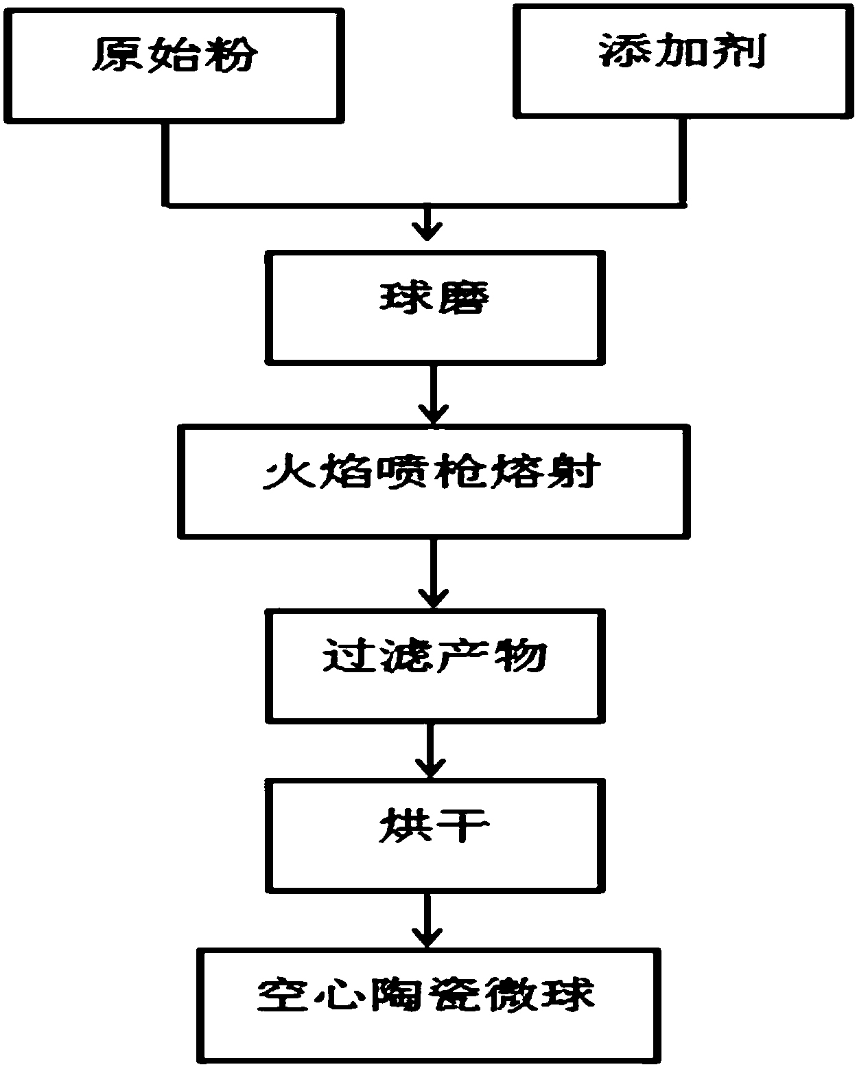 摘要:本发明提供了一种制备空心陶瓷微球的方法,首先以油页岩灰渣为原料,通过球磨机球磨,制成10~15um大小的油页岩灰渣粉末;在所述油页岩灰渣粉末中加入碳酸钠或硝酸钠或碳酸钠与硝酸钠的混合物,用球磨机球磨得到混合粉末Ⅰ;然后将所述混合粉末Ⅰ通过火焰喷枪熔射得到混合物Ⅰ,其中接受介质为水,淬息距离为400~500mm;之后将混合物Ⅰ分离并收集空心陶瓷微球,最后用烘箱烘干空心陶瓷微球;本发明采用的原料为油页岩灰渣,无需重新配料、熔化,原料成本低,减少了重熔过程所需能量,使工序简化;本发明工艺简单,效率高,易于规模化工业生产。