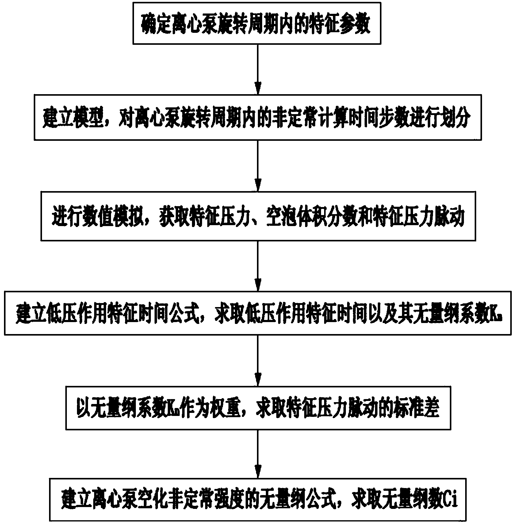 摘要:本发明涉及水力机械的空化领域,具体涉及一种用于表征空化非定常强度的方法。为了解决现有技术中采用能量下降法表征离心泵的空化发展强度,存在滞后和误差的问题,本发明公开了一种用于表征离心泵空化非定常强度的方法。该方法包括以下步骤:步骤一,确定离心泵旋转周期内的特征参数;步骤二,建立模型进行数值模拟,获取离心泵的特征压力脉动ΔP并求其标准差值S;步骤三,建立离心泵空化非定常强度的无量纲公式,对该空化条件下离心泵的空化非定常强度进行计算,获取无量纲系数Ci。通过本发明的方法获得的无量纲数Ci表征离心泵空化发展强度要比现有技术中采用能量下降法表征离心泵空化发展强度更精准更快速。