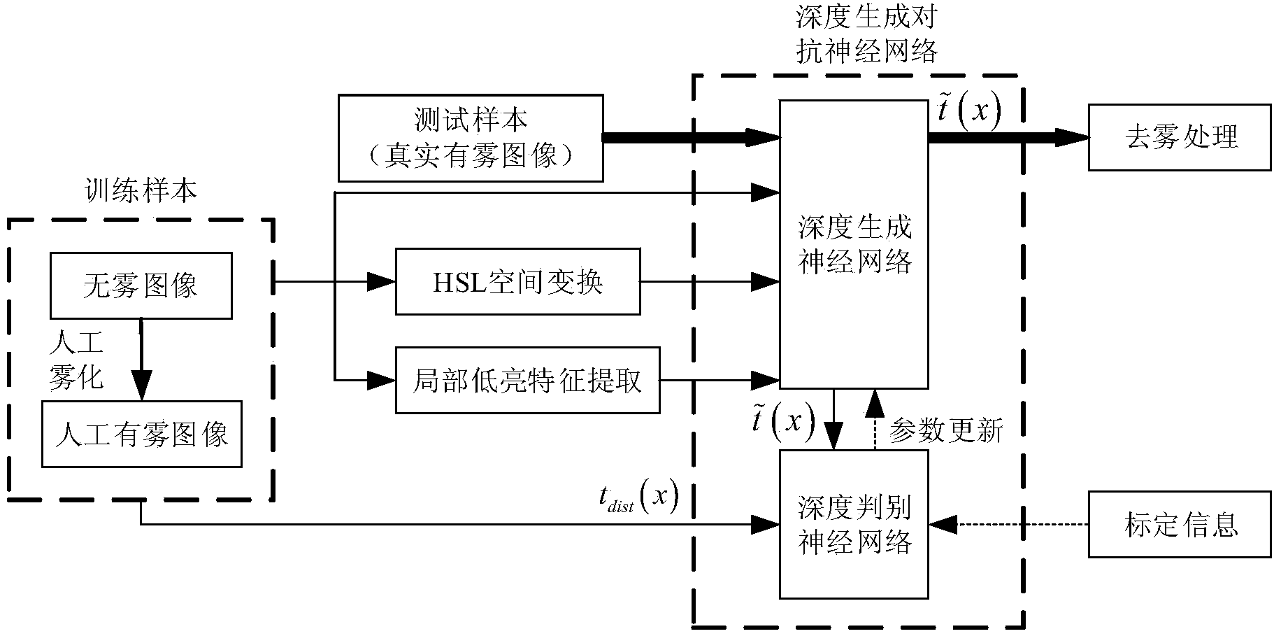 摘要:本发明公开了一种基于深度学习的图像去雾算法,用于去除有雾图像中的雾气干扰,降低雾气对图像质量的影响。包括:步骤1,获取训练样本集与测试样本集;步骤2,对样本集中有雾图像进行HSL空间变化,提取有雾图像局部低亮特征,并对所有特征分量进行尺度缩放与归一化处理;步骤3,找出判别透视率,使深度判别神经网络实现对抗式训练;步骤4,利用深度生成对抗神经网络对上述特征分量进行训练,学习建立有雾图像与透视率间的映射网络;步骤5,运用深度生成神经网络对测试样本集进行去雾测试。本发明中所述去雾算法,通过深度学习算法建立出有雾图像到透视率间的映射关系,有效的解决了以往去雾算法先验信息不足的问题,具有较好的去雾效果。