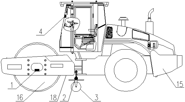 摘要:高填方地基土压实度连续检测与监控系统,包括第一振动传感器(1)、第二振动传感器(2)、反馈滚轮(3)、压实度数据处理服务器(4)、标准压实度波形数据库(5)、GPS定位设备(6)、用户电脑(7)、隔震橡胶垫片(8),第一振动传感器(1)和第二振动传感器(2)分别内置有无线传输芯片(11),压实度数据处理服务器(4)内置有无线传输芯片(11)、USB插口(12)、GPS行驶记录芯片(13)、电信无线终端(14)、液晶显示屏(9)和语音提示器(10);第一振动传感器(1)安置在压实机器(15)的振动轮(16)上,反馈滚轮(3)通过螺栓(17)固定在振动轮(16)的结构梁(18)下方,第二振动传感器(2)安置在反馈滚轮(3)上,压实度数据处理服务器(4)安装固定在压实机器(15)操作室的仪表显示区,GPS定位设备(6)安装固定在填方区域的角落位置。