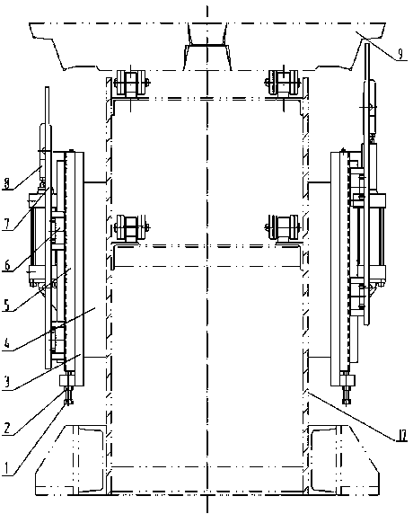 摘要:用于铝锭连续铸造生产线机器人码垛的层整列装置,整个整列装置相对于层运机铝锭前进方向分为左右两个部分,在结构上完全相同,通过槽钢(4)与层运机机架(17)连接在一起,槽钢(4)与固定底板(3)焊接在一起,气缸连接板(5)上安装有气缸(13),并通过其上的长圆槽,用螺钉(16)与固定底板(3)连接在一起;通过螺钉(14)将直线导轨副中的两对滑块(6)与整列板(10)连接在一起,直线导轨副中的固定导轨(18)用内六角螺钉(19)与气缸连接板(5)连接。