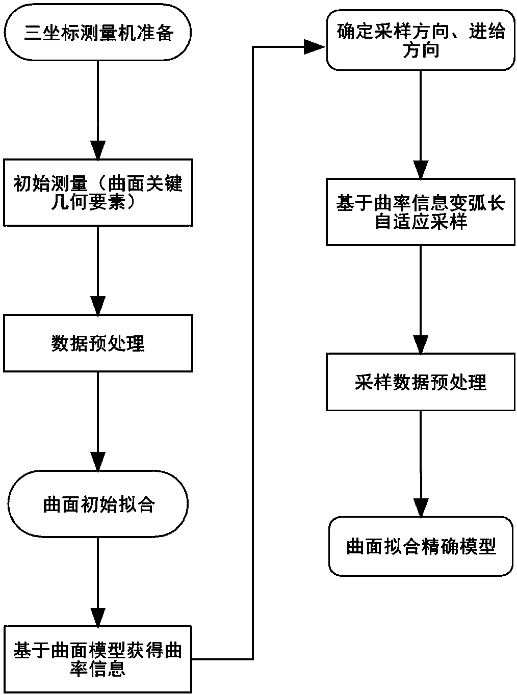 摘要:本发明公开了一种变弧长自适应采样方法,属于针对航空发动机叶片的未知曲面CAD模型测量计算方法的技术领域。包括初始测量;数据预处理;曲面初始拟合;获得曲率信息;确定采样方式;变弧长自适应采样;采样数据预处理和曲面拟合获得精确模型等步骤;本发明是在第一次测量获得未知曲面的基本曲率信息,基于这些曲率信息第二次进行曲面变弧长自适应采样测量,从而重构出曲面的精确CAD模型。本方法具有精度高,无需其他的辅助设备且易于实现的优点。