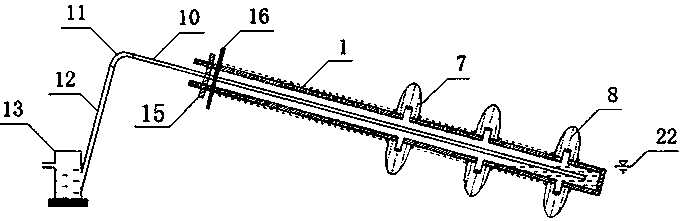 摘要:一种边坡自排水锚杆及施工方法,自排水锚杆包括中空锚管、锚具、垫板和虹吸管;中空锚管一端开口、一端封闭,外围包裹滤网、开口端设螺纹、中后部开设透水孔、后段与出浆管垂直连接,出浆管端部套有袖阀和土工袋,出浆管两侧用抱箍将土工袋夹持固定在中空锚管上;中空锚管下倾斜放置于坡体内,保持中空锚管的管口与管底相对高差小于7m,浆体在土工袋内凝固锚固于稳定土体内,锚具将中空锚管前段锚固于垫板上;虹吸管的吸水管插入中空锚管内并伸至底部,在坡面通过接头弯管与排水管和平衡出水器连接,吸水管的进水口和平衡出水器出水口高程相同。本发明结构简单,能同时实现锚固与排水,并具有良好效果,施工简便,造价低廉。