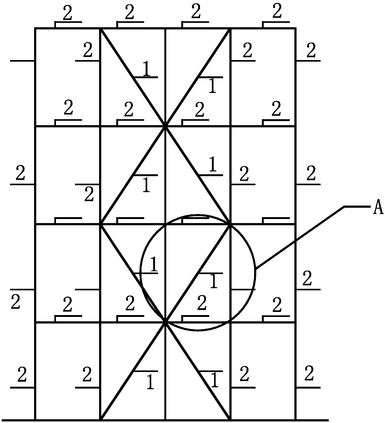 摘要:本发明提供一种特殊中心支撑钢框架结构,包括由梁柱构成的框架,在框架柱之间设置中心支撑,所述特殊中心支撑包括:防屈曲支撑和连接在其两端的延性耗能标准连接件,所述延性耗能标准连接件与框架梁柱采用端板螺栓连接,所述延性耗能标准连接件的强度低于钢框架结构的强度。由于本发明在中心支撑的两段分别设置了延性耗能标准连接件,一方面,在发生地震时,延性耗能标准连接件屈服耗能并不容易发生脆性断裂,提高了框架抗震性能,另一方面,引入防屈曲支撑保证了延性连接件的非线性变形行为,同时在大震下能够补充耗能。