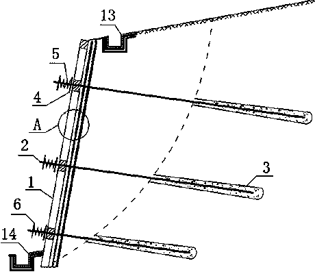 摘要:季节性冻土区自调温回位耗能坡体支护结构及施工方法,属于季节性冻土锚喷支护技术领域。结构包括格梁、锚杆、弹簧和保温结构;其特征在于:在坡体中打入锚杆,并压力注入锚固浆体将锚杆锚固于稳定土层,自坡面向外依次铺设保温结构和土工格栅,并喷射砂浆面层,坡面上施作格梁,锚杆穿过格梁的交叉部位,在锚杆上依次套上垫板和弹簧,用锚具将锚杆锚固在格梁上,沿坡面横向每隔一定距离设置竖向排水通道,坡顶设置截水沟,坡脚施设排水渠;本发明结构具有自调保温隔热、减胀减震和自回位支护性能,能够及时梳排水分,有效解决了冻胀融沉灾害引起的坡体失稳。本发明方法简单,可行性强,施工快捷,造价低廉。