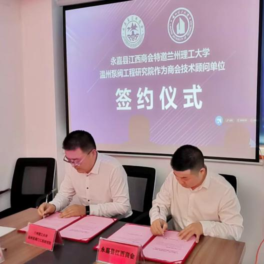 活动现场还举行了兰州理工大学温州泵阀工程研究院担任永嘉县江西商会顾问单位的签约仪式。