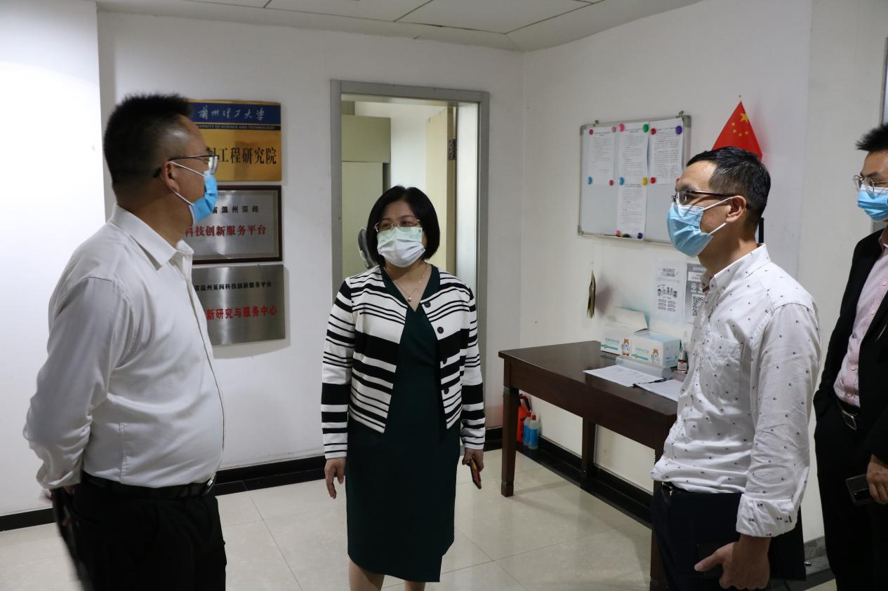 兰州理工大学温州泵阀工程研究院院长助理梅丽文介绍了研究院的疫情防控和安全管理措施,包括每日测温、上报健康数据,每周开展核酸检测,严格执行来访人员信息登记、实验室安全管理等相关内容。黄大善肯定了研究院的疫情防控工作,并表示科技大楼的管理人员和入驻企业应落实落细各项疫情防控工作,加大安全隐患排查整改力度,严防安全事故发生。