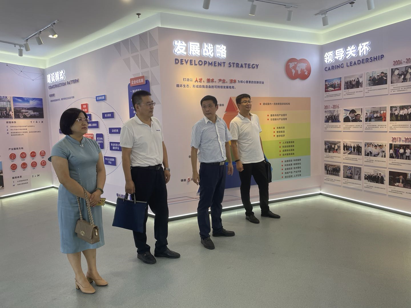 会后,杨威带领曹驰一行人参观了展览厅和实验室并介绍了未来发展方向。