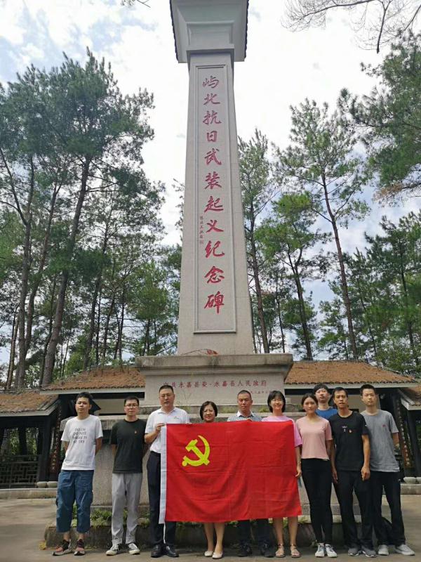 屿北村曾是土地革命战争时期红十三军活动的中心区域、抗日战争时期原瓯北县委的主要驻地,是革命老根据地。在屿北抗日武装起义纪念馆里,大家认真观看历史老照片和步枪、锄头及镰刀等革命武器,详细了解了先辈们的英勇事迹,深切感受和领会先辈们坚忍不拔、不畏艰难的必胜信念。站在屿北抗日武装起义纪念碑前,党员们怀着无比崇敬的心情,面向党旗,重温入党誓词,心中的理想信仰更加坚定。