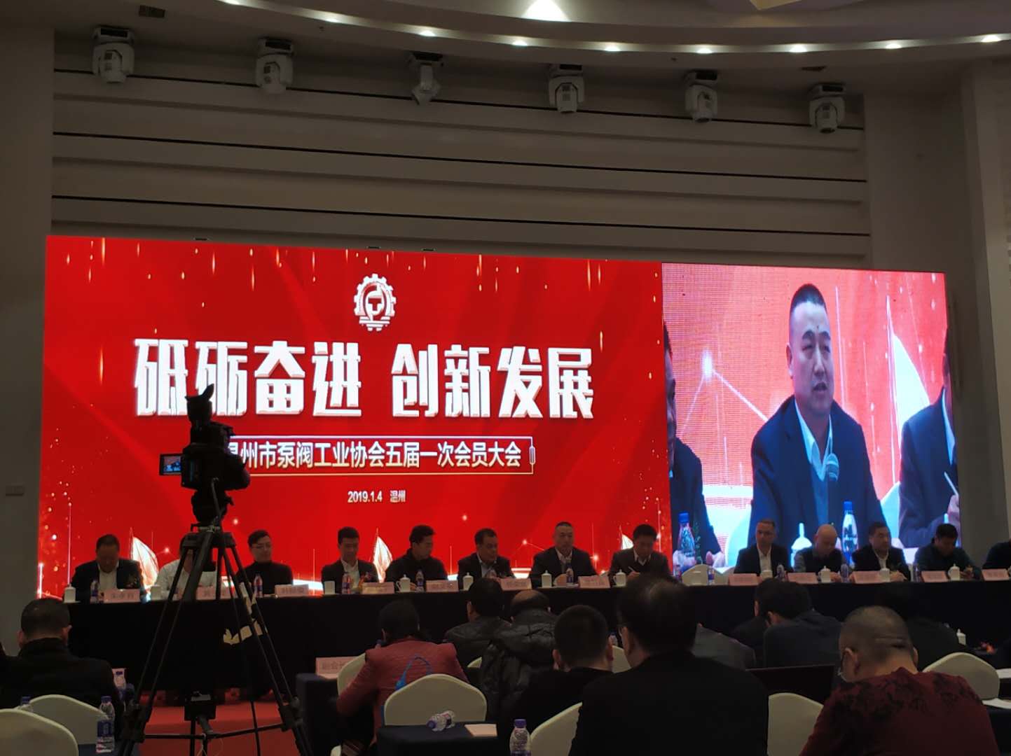 2019年1月4日,温州市泵阀工业协会五届一次会员大会在万和豪生大酒店隆重召开。市经信委徐竹良副主任、市质监局余玮副局长、中阀协秘书长宋银立出席会议,200余位会员单位代表参加会议。兰州理工大学温州泵阀工程研究院曹驰院长、梅丽文院长助理受邀参加会议。