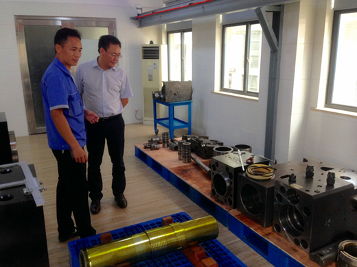 2016年9月5日下午,泵阀研究院安宗文院长、梅丽文主任、张立强副教授一行走访温岭市贝力特机械有限公司,就前期达成的液压破碎锤关键技术研究开发中心合作协议事宜展开交流和探讨。贝力特机械蔡斌丰总工热情接待了安院长一行,介绍了企业的发展现状、人才队伍、产品特色等方面情况,并陪同参观了企业生产和装配车间。期间,双方就液压破碎锤理论设计、强度计算及制造工艺等方面技术难题进行了深入的沟通和探讨,并达成了广泛的一致。