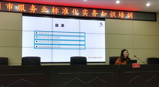 温州市标准化院的服务业标准化专家陈怡老师受邀为学员们上了一堂精彩纷呈的“标准化基础知识及服务业标准化工作实务”课。培训会上,首先,简要回顾了标准化的发展历史。其次,对比分析了国内外标准化工作现状,强调标准是质量的标志,逐步成为提高国际竞争力的重要手段。再次,介绍了标准化相关基础知识,包括标准、标准化和服务业标准化的基本概念,标准化的基本原理,标准体系的构建原则等。最后,重点讲解如何开展服务业标准化试点项目,主要包括申报、策划、搭建标准体系、编制企业标准、运行标准体系、自我评价与持续改进和总结考核7个阶段。整个培训活动内容丰富,效果良好,反响热烈。通过本次培训,有利于推进温州服务业标准化试点工作的有效开展,进一步提高服务业标准化试点项目管理单位、承担单位工作人员的业务素质和工作水平,助力温州市服务业的健康快速发展。