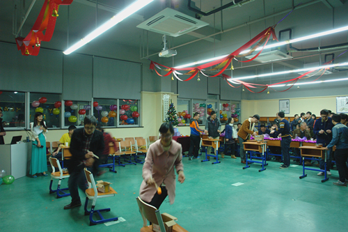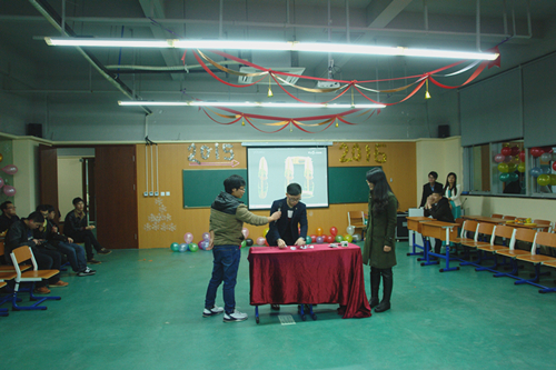 游戏互动环节由瞎子背瘸子、夹乒乓球、猜字谜三部分组成,在游戏中大家积极表现,活动轻松愉快,晚会中弥漫了和谐、团结、友爱的气息,展现了温州研究生分院的良好形象和强大的集体凝聚力,同时也表达出了大家对即将到来2016有更多的期许和更加美好的祝愿。