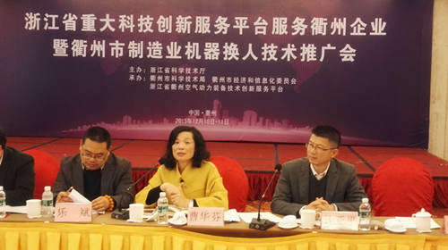 12月11日上午,召开了浙江省科技创新服务平台服务衢州企业暨衢州市制造业机器换人技术推广会。曹华芬处长、衢州学院李江波副校长、衢州经信局杨剑国副主任、衢州科技局方长青副局长出席会议。来自衢州的企业代表100余人参加会议。会议期间浙江省机械装备制造技术创新服务平台、浙江省汽车及零部件产业技术创新服务平台、浙江省工业自动化公共科技创新服务平台、浙江省五金科技创新服务平台、浙江省新昌轴承与专用装备科技创新服务平台、浙江省工业设计技术创新服务平台就各自在“机器换人”方面的资源和典型案例进行汇报。
