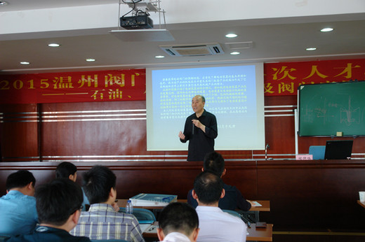 在永嘉县科技局和永嘉县经济商务和信息化局的支持下,由兰州理工大学温州泵阀工程研究院和浙江省泵阀行业协会协联合举办的“2015温州阀门行业高层次人才培训班——石油、化工工艺流程及阀门应用技术”于5月9日上午,在永嘉科技大楼七楼正式开课。永嘉县科技局局长潘宏雷、永嘉县经济商务和信息化局副局长葛志武、浙江省泵阀行业协会秘书长陈文荣、泵阀研究院院长杨国来参加开课仪式并讲话。温州地区从事阀门及相关的企业技术、管理人员及温州研究生分院研究生共90余人参加了此次培训班。