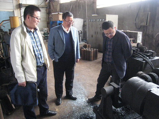 最后,到科博机械和裘俊杰总经理一同就高压过滤器的罐体在碾压成型过程中,成型碾压板易损坏,使用寿命短的问题寻求解决方法。杨院长提出对碾压板进行PVD镀膜或者镶嵌陶瓷片,试试使用效果。曹院长还和裘总在过滤器滤芯、特殊材料的加工成型等方面进行了交流与探讨。