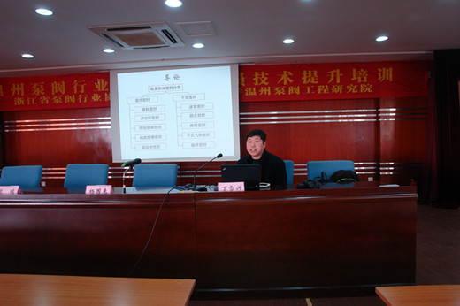 由兰州理工大学温州泵阀工程研究院与浙江省泵阀行业协会联合举办的“温州泵阀行业阀门设计人员技术提升培训”于2015年1月26日上午在永嘉科技大楼七楼举行。浙江省泵阀行业协会秘书长陈文荣、兰州理工大学石油化工学院副院长梁瑞、丁雪兴教授、泵阀研究院院长杨国来参加并讲话,温州泵阀及相关企业技术人员150余人参加本次培训。