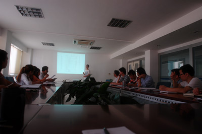 会上,技术部陈豪介绍了影响室内空气质量的因素是由物理学性参数(温度、湿度等)、放射性参数、生物性参数、化学性参数等原因,并在各因素检测方法中详细的介绍了甲醛的检验——酚试剂分光光度法、电化学法、电离子化检测仪检侧法,并分析对比了这三种检测方法的优缺点。