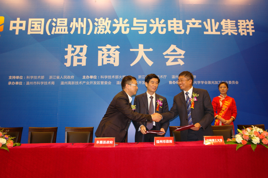目前,温州市激光与光电产业快速发展,产业规模不断壮大,创新能力持续增强,初步形成了以激光应用、光伏发电、半导体照明、光通信为特色的产业链,涌现了一批高附加值、高带动性、高成长性的战略性新兴产业集群区。这次激光应用创新大会,对激光与光电产业的先进技术,进行重点推荐展示和对接交流提供了平台。本次大会以“创新应用,创新产业”为主题召开。期间,还举办了中国(温州)激光与光电产业集群建设招商大会、激光应用技术与设备展示交易等活动。在中国(温州)激光与光电产业集群建设招商大会上仇杨均副市长为大会致辞,市科技局徐顺东局长发表重要讲话。兰州理工大学借此次大会契机,与温州市人民政府、永嘉县人民政府共同签订了兰州理工大学温州研究生分院合作共建协议书。此次签约也为进一步深化与地方政府的合作,培育温州本土高层次创新人才,提升温州泵阀产业的创新能力和科技竞争力,加快兰州理工大学科技成果转化奠定基础。