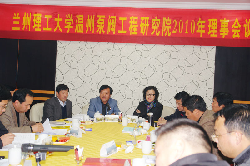 12月18日下午,兰州理工大学温州泵阀研究院2010年理事会议在温隆重召开,理事长兰州理工大学党委书记王智平,副理事长、温州市人民政府副市长徐育斐、兰州理工大学副校长芮执元,理事兰州理工大学副校长俞树荣、科技处处长毛开富、能源与动力工程学院院长李仁年、人事处处长张思成、市科技局副局长匡连庭、永嘉县人民政府副县长周星柱、永嘉县科技局局长傅朝宗、龙湾区政府副区长赵飞,温州市科技局科技合作处处长陆千帆,市政府办公室科技处处长宋文龙、龙湾区科技局局长朱进国出席了此次会议。研究院院长杨国来、副院长王宝才、刘宜教授、办公室主任王正民、项目管理负责人梅丽文等列席了此次会议。会议由兰州理工大学书记王智平主持。