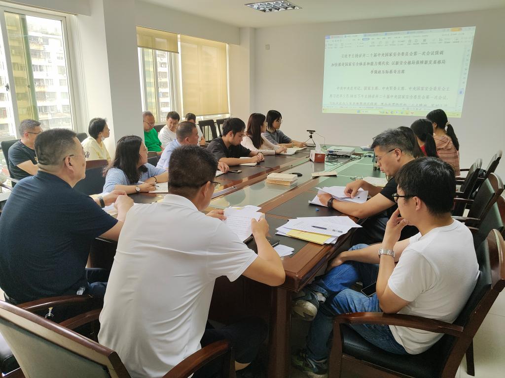 6月16日下午,研究院结合教职工理论学习会议召开“安全生产月”专题学习,会议由研究院院长曹驰主持,全体教职员工参加了会议。会议学习了习近平主持召开二十届中央国家安全委员会第一次会议上的重要讲话、习近平总书记关于安全生产的重要论述、《总体国家安全观学习纲要》篇目《总体国家安全观是新时代国家安全工作的根本遵循和行动指南》,了解掌握学校消防安全管理规定、校园交通安全管理规定和实验室安全管理规定。