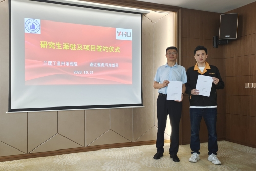兰理工温州泵阀工程研究院/温州研究生联合培养基地副院长张伟政、专家赵荣珍教授及三名研究生等一行于2023年10月31日上午前往浙江雅虎汽车部件股份有限公司开展合作项目签约及研究生派驻实践工作。