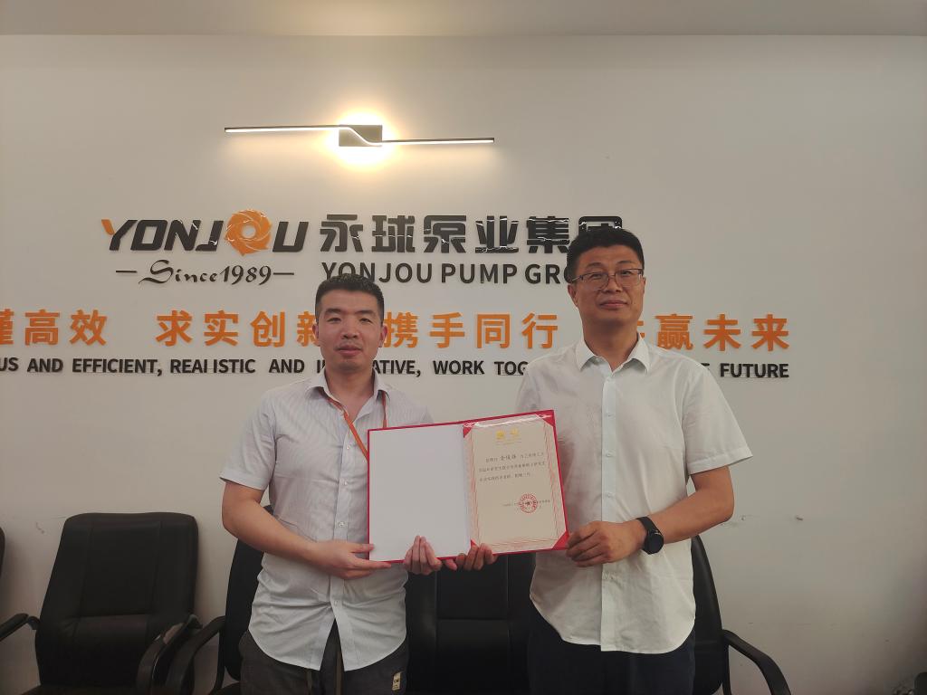 2024年5月30日下午,兰州理工大学温州泵阀工程研究院副院长张伟政、专家牛显明等一行人赴浙江永球科技有限公司,与公司行政副总陈圣海、技术部经理金俊强座谈交流,发放企业导师聘书,并参观展厅。