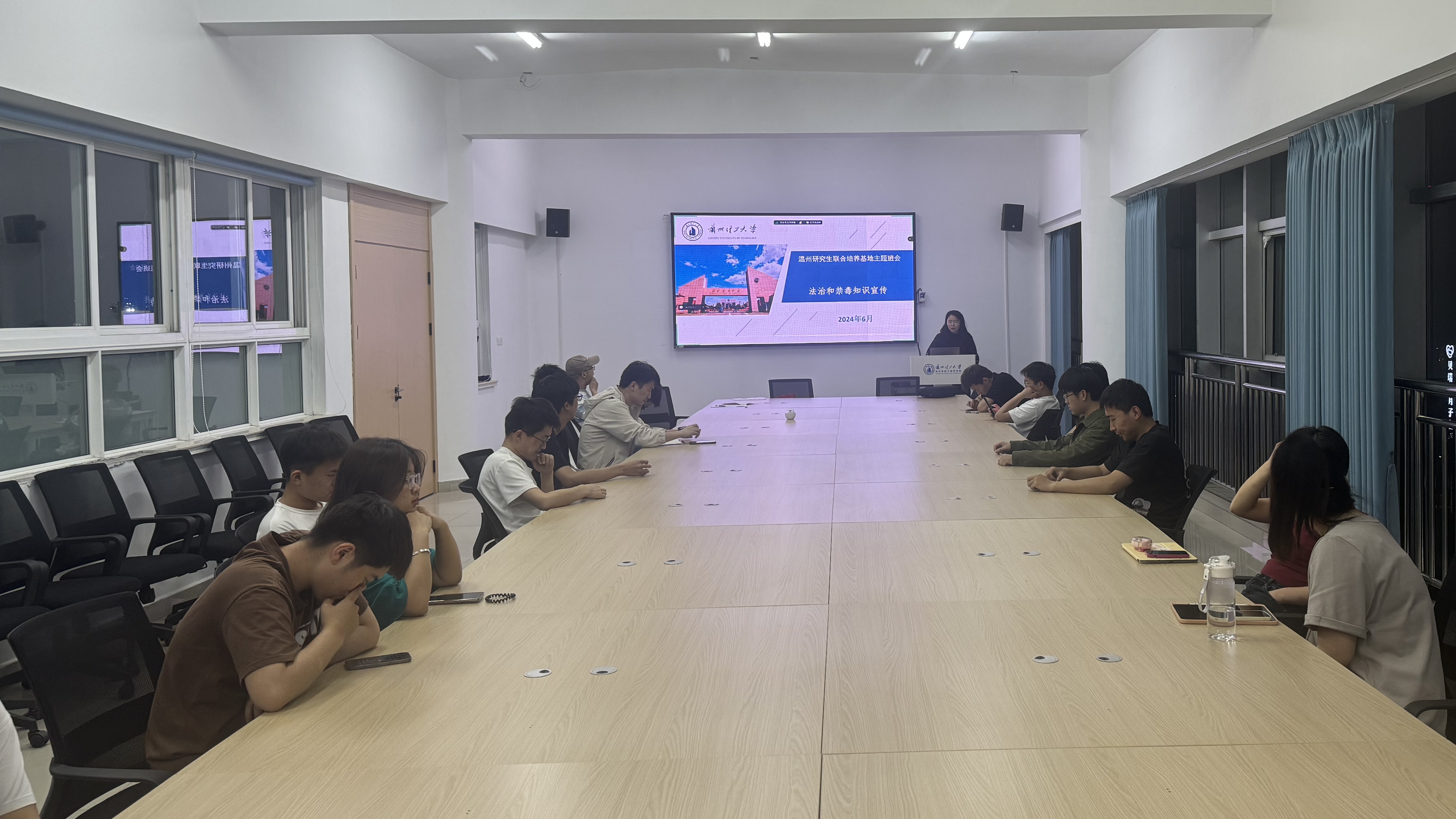 温州研究生联合培养基地于2024年6月6日晚上七点半在基地办公楼505会议室开展法治和禁毒宣传主题班会和“安全生产月”主题团日活动,管理办老师、2022级来温实践研究生以线下线上方式参加。