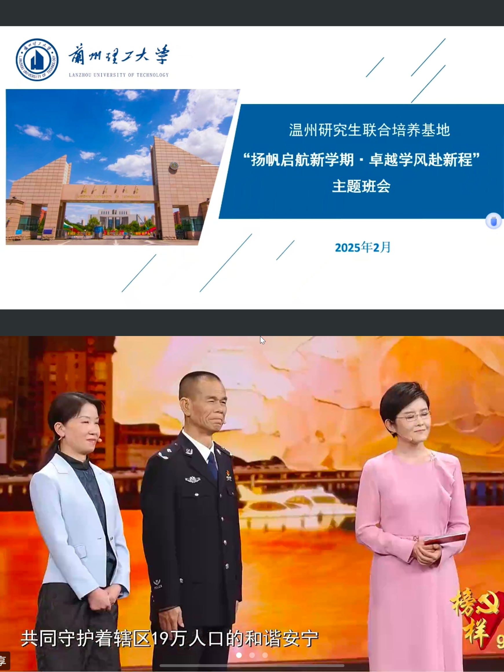 温州研究生联合培养基地于2025年2月26日晚上八点半在办公楼405会议室开展“扬帆启航新学期·卓越学风赴新程”主题班会和主题团日活动,基地管理办老师、2022级在温研究生、2023级全体来温实践研究生以线下线上方式参加。
