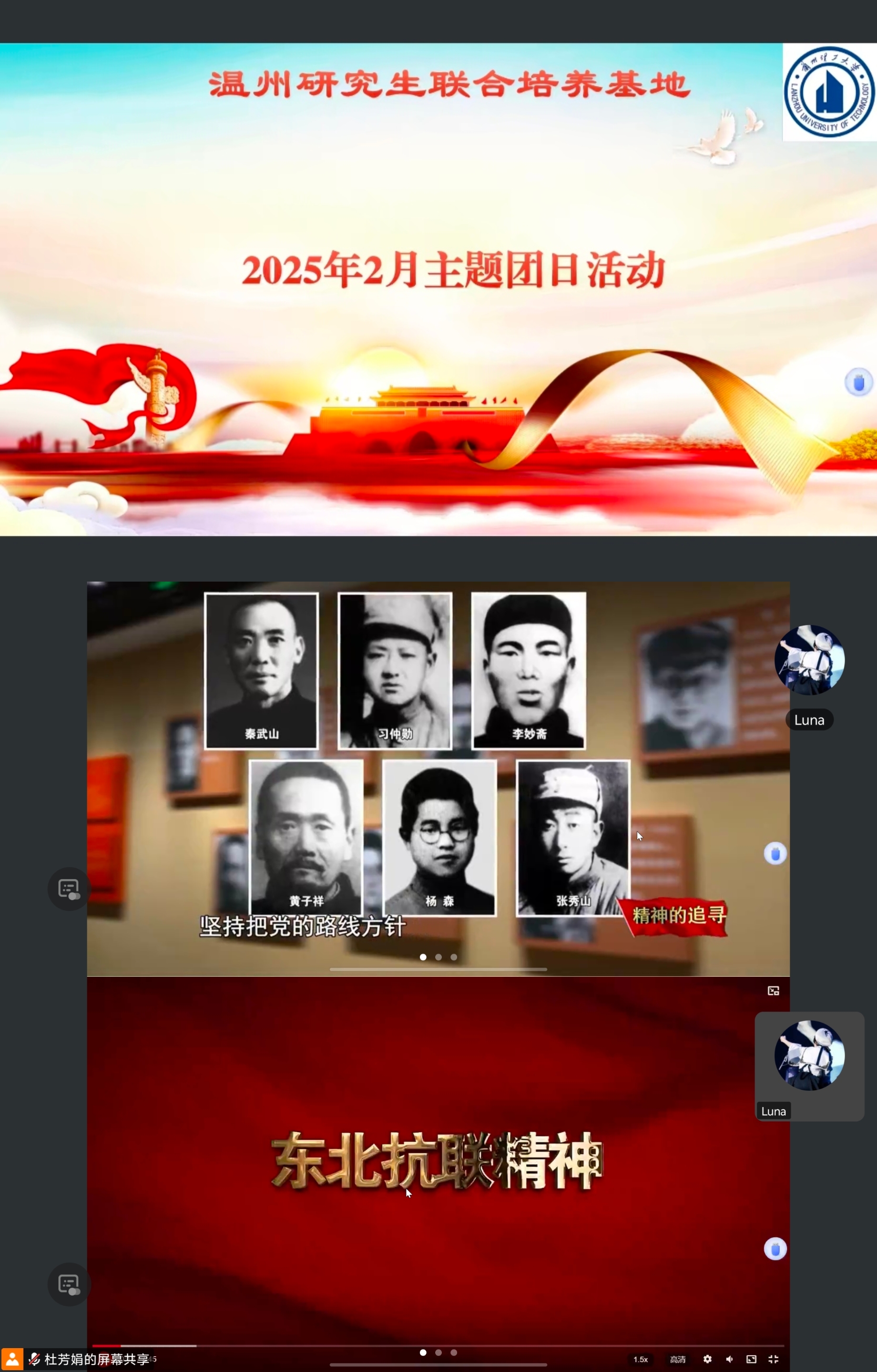 主题团日活动上继续开展安全教育和保密教育,学习《中华人民共和国传染病防治法》《中华人民共和国保守国家秘密法实施条例》;学习习近平《在二〇二五年春节团拜会上的讲话》;继续学习中国共产党人的精神谱系,观看《精神的追寻——中国共产党人精神谱系》第10集“照金精神”、第11集“西北抗联精神”。
