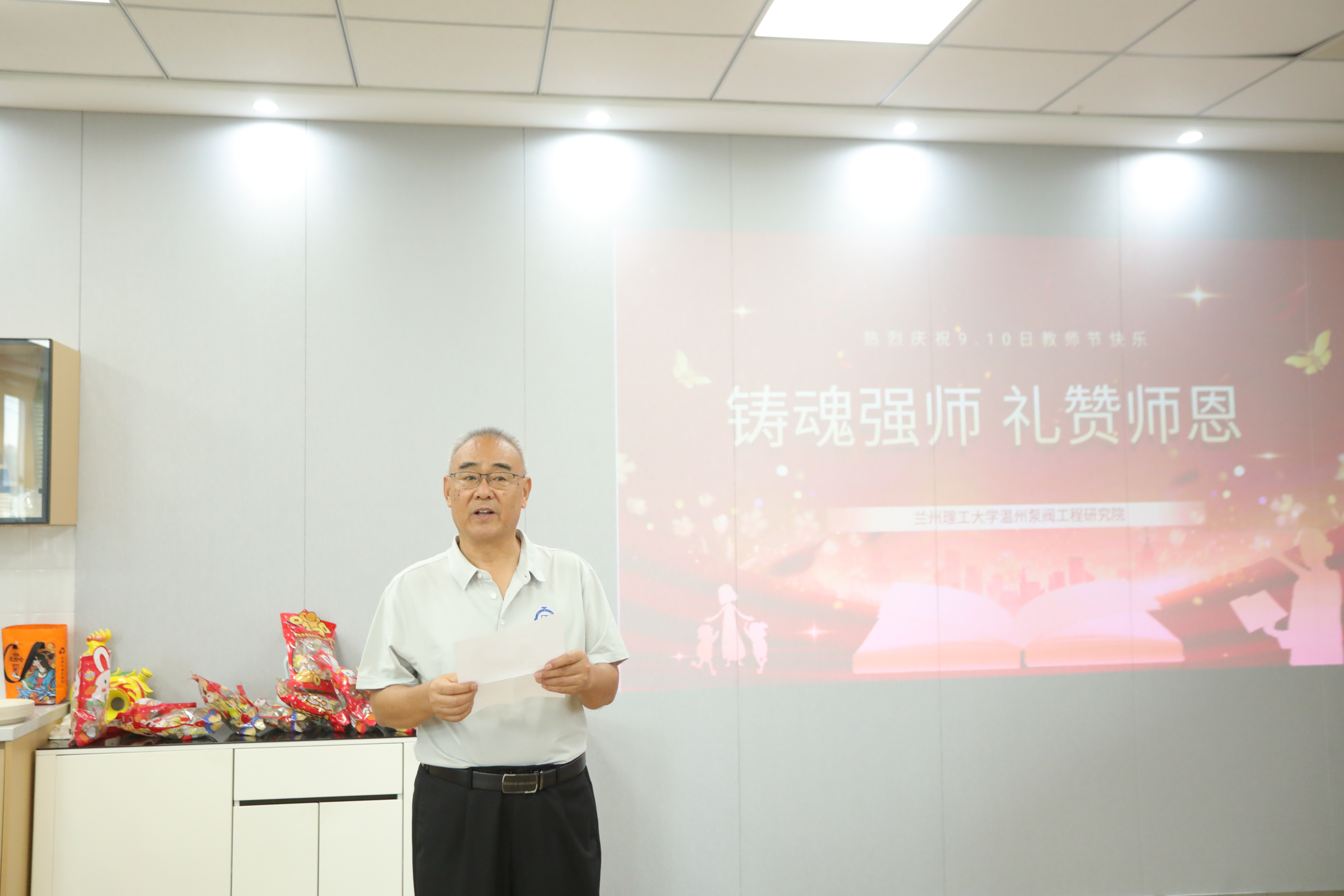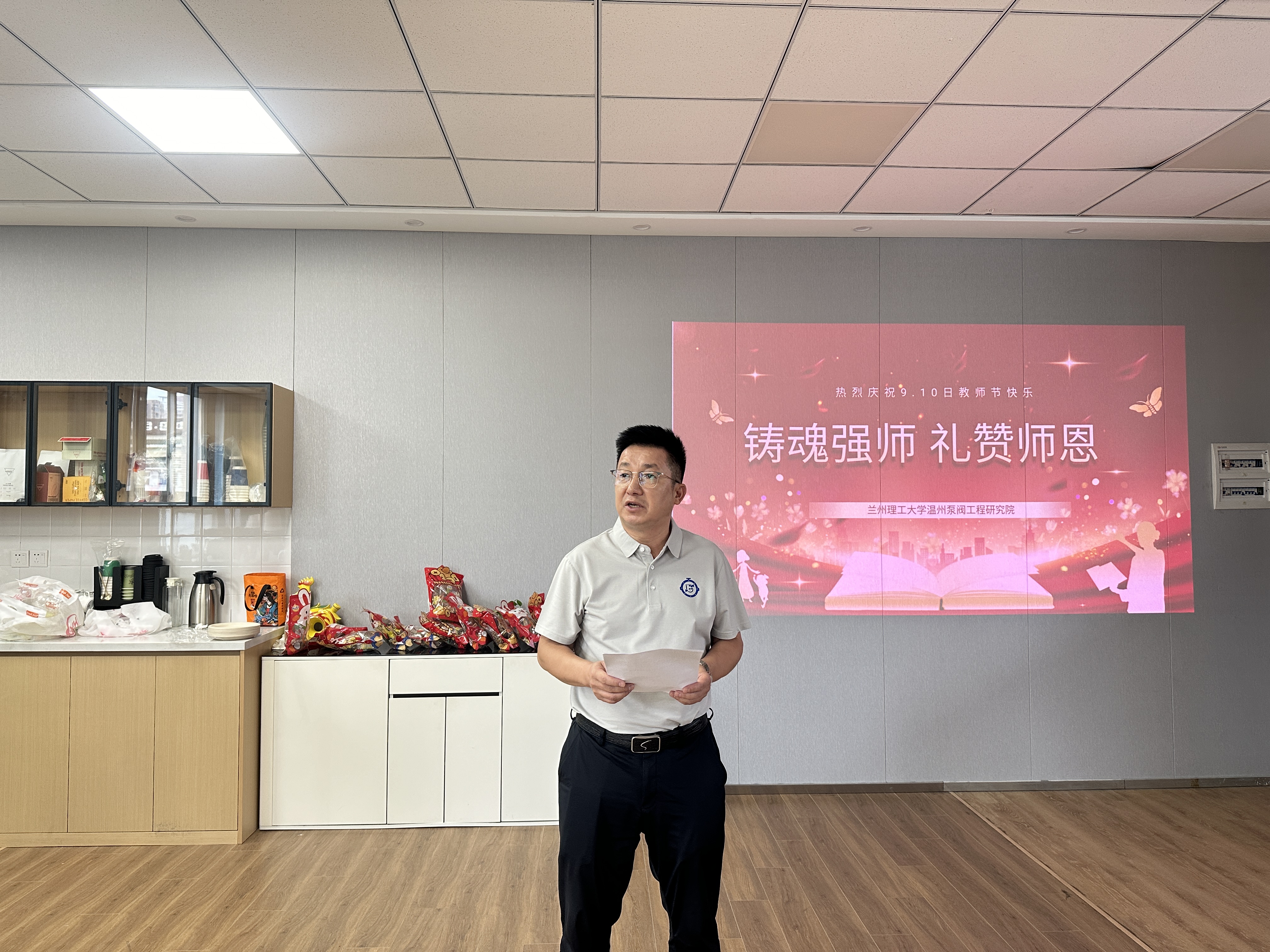 金秋九月,硕果飘香,在这个凝聚收获与希望的美丽金秋,我们迎来了第41个教师节。值此佳节,为大力弘扬教育家精神,感谢各位教职员工的辛勤付出,2025年9月10日上午,兰州理工大学温州泵阀工程研究院工会组织开展以“铸魂强师,礼赞师恩”为主题的庆祝活动,温州泵阀院全体院领导、专家、教职员工、在温研究生代表参加。庆祝活动由直属党支部书记张伟政主持。