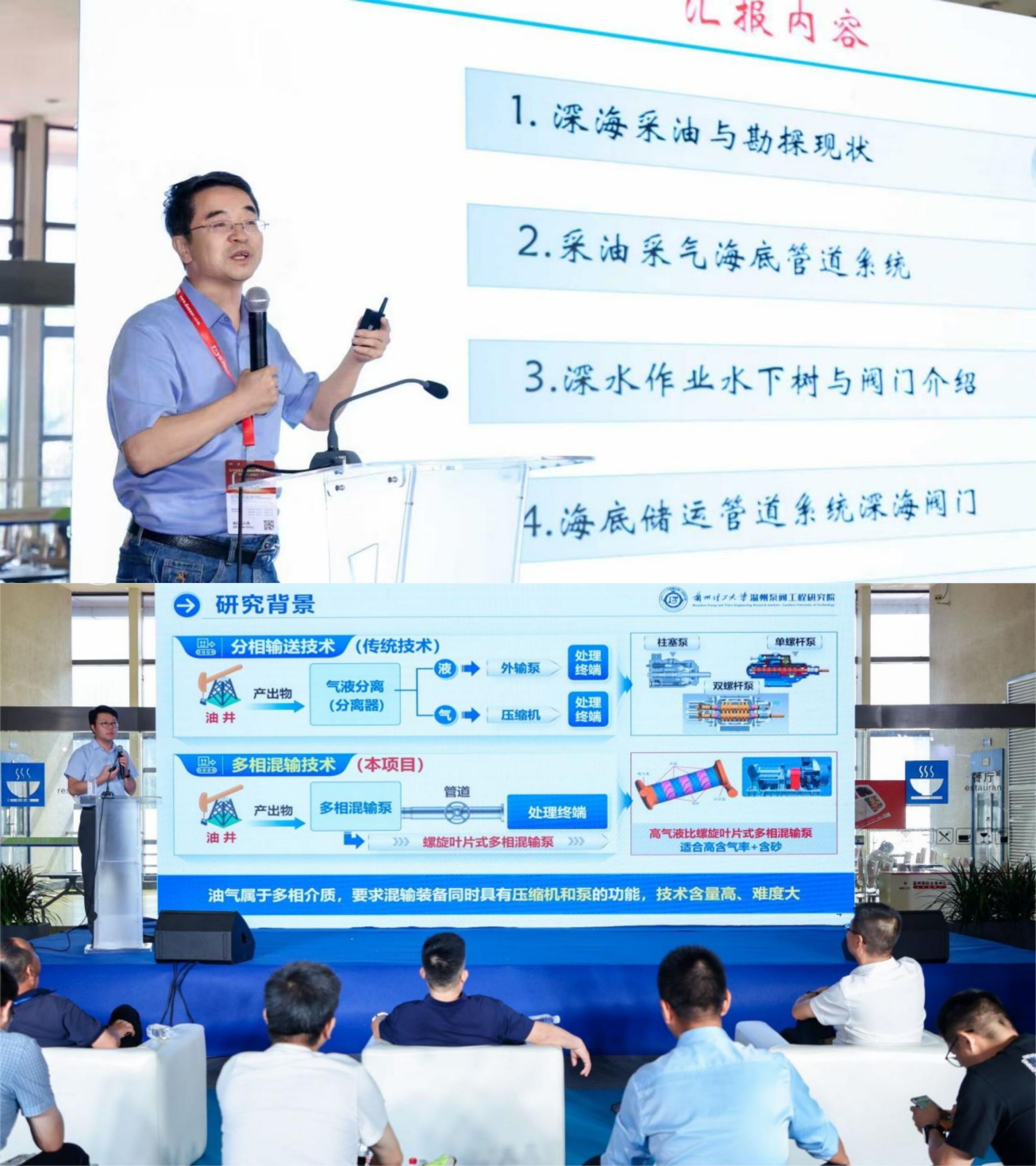 10月18日,在同期举办的第四届温州控制阀论坛暨阀门用户技术交流大会和展览会技术沙龙上,研究院专家李树勋教授、研究院副院长权辉教授受邀分别作了题为《深海油田开采与储运管道系统阀门》《油气高效混输关键技术及设备研发与产业化》的报告,重点介绍了深海阀门相关前沿技术和自主研发的油气混输泵及控制系统,受到与会专家、学者、技术人员等的充分认可和广泛好评。
