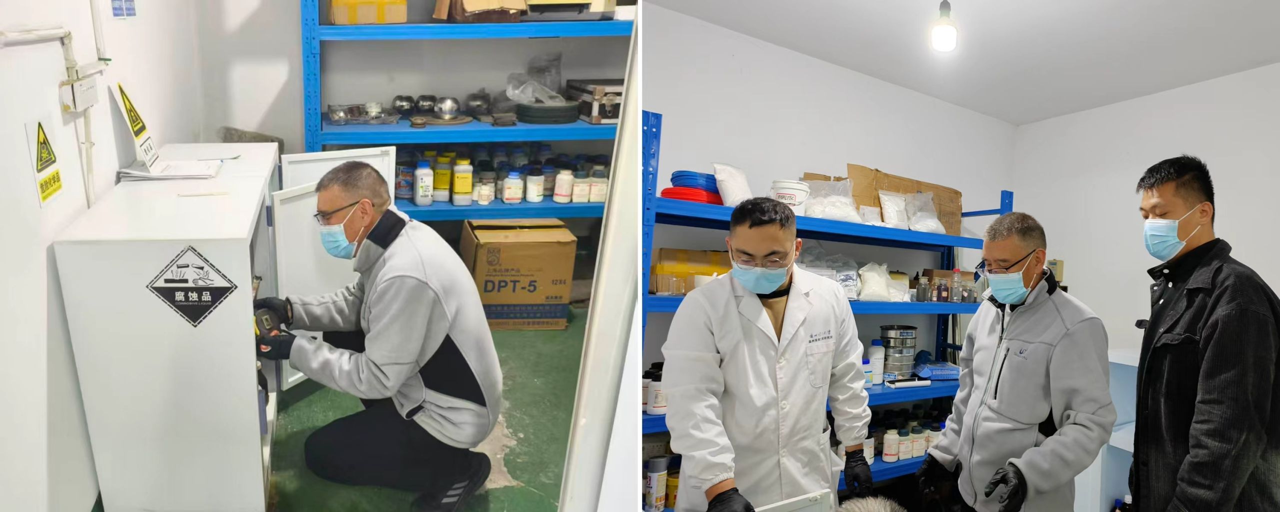 当日下午,在研究院及专家的组织下,技术部全体人员开展了危险化学品储存要求与标识规范的专题学习,并针对检查中发现的隐患立即开展整改行动,对实验室危化品进行了全面盘点,严格按照规范要求进行科学分类与摆放,重新梳理并更新了物品标签,确保名称、类别及危险等级标注准确。与此同时,对实验室电气线路进行了全面排查,针对发现的隐患问题制定了整改方案,并明确整改措施与完成时限。