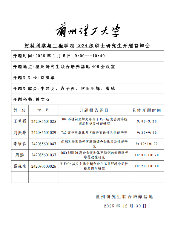材料科学与工程学院2024级硕士研究生开题答辩会