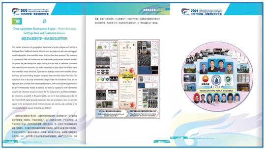 兰州理工大学李慧老师的师生团队(李慧/材料学院,李树明/经济管理学院,王宁/研究生,廖勋桦/研究生,赵海涛/研究生,薛子健/研究生,李小虎/本科生),于2022年9月以名称为《Green Agriculture Development Engine——Water-Retaining Gel Type Slow and Controlled-Release Fertilizers》的项目报名参加大赛现代农业领域“团队组”,经140余项报名项目的筛选,于2022年11月初,入选复赛的40个团队。2022年11月28日线上参加复赛,以现代农业领域小组第三名的成绩进入总决赛。在2023年1月9日的总决赛中,获得“团队组”三等奖的好成绩。